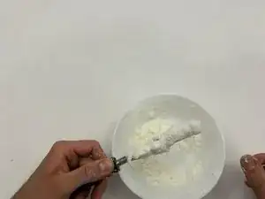 Добавьте одну восьмую чайной ложки пищевой соды, если смесь слишком жидкая, или 4–5 капель воды, если паста слишком густая.