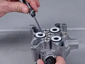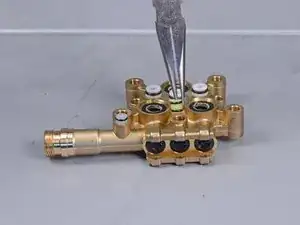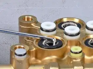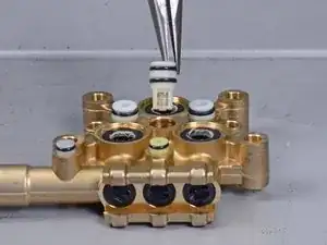 Замените серый штифт клапана на новый из ремонтного набора.