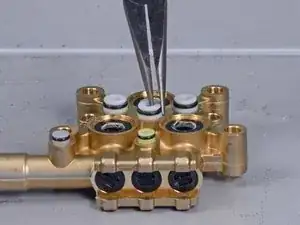 Вероятно, металлические шайбы клапанов не вышли вместе с пластиковыми клапанами. Выполните этот шаг, чтобы удалить металлические шайбы клапанов из головки цилиндра.