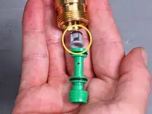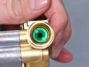 Вкрутите зелёную вставку сопла обратно в отверстие.