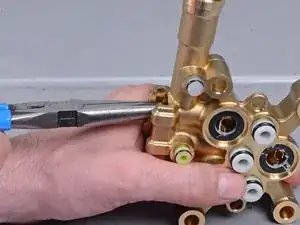 Используйте тонкогубцы, чтобы ухватиться за кромку металлических шайб клапанов.