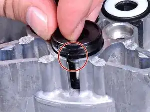 Снимите три чёрных кольца с канавками с головки цилиндра.