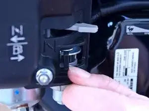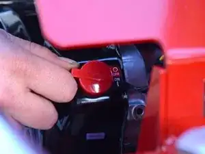 Переключите красный выключатель двигателя в положение ВЫКЛ.