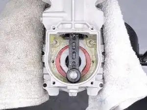 Используйте крестовую отвертку Phillips #2, чтобы открутить четыре винта, фиксирующие крышку поршня.