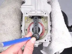 При сборке убедитесь, что подшипник и шестерня выровнены с отверстием в алюминиевом корпусе перед впрессовыванием. Убедитесь, что вал выровнен с вырезом перед повторной установкой сборки.