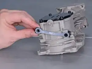 Используйте пресс и специальный выколоток, чтобы аккуратно выпрессовать кривошип, подшипник и сборку шестерни из корпуса.