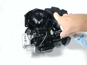 Поднимите пластиковую крышку. Обратите внимание, что стартер прикреплён к крышке и снимется вместе с ней.