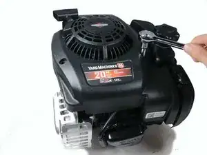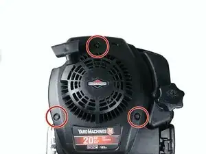 С помощью головки или гаечного ключа 5/16" отверните три болта, крепящие пластиковую крышку к двигателю.