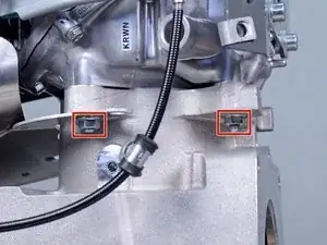 Используйте гаечный ключ 13 мм, чтобы снять четыре гайки, крепящие двигатель к картеру, по две с каждой стороны.