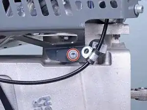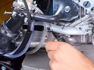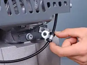 Используйте шестигранную головку 6 мм, чтобы снять болт кожуха двигателя, крепящий направитель троса.