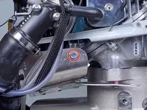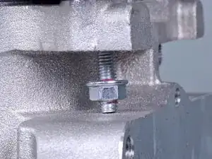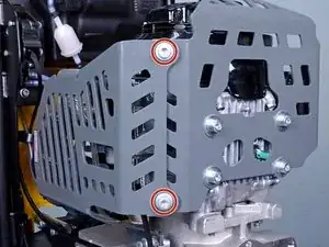 Используйте шестигранную головку 6 мм, чтобы снять три оставшихся болта, крепящие кожух двигателя: два по внешнему краю и один рядом с картером.