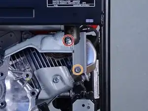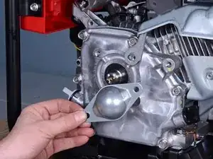 Наклоняйте генератор вперёд и назад в сторону каждой сливной горловины, чтобы позволить стечь последним остаткам масла.