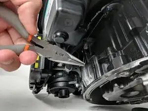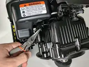 С помощью плоскогубцев с тонкими носами аккуратно отсоедините пружину от конца, противоположного воздушному фильтру.