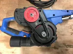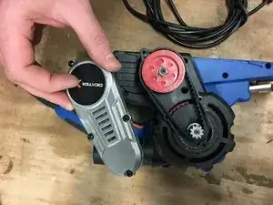 Открутите четыре винта, чтобы получить доступ к приводному ремню.