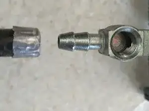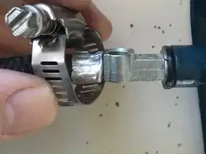 Более дешёвые насосы сложнее ремонтировать. Шланг крепится к корпусу металлической обжимной муфтой, которая не рассчитана на повторное использование. Я думал, что ремонт будет трудным, но на самом деле он оказался довольно простым.