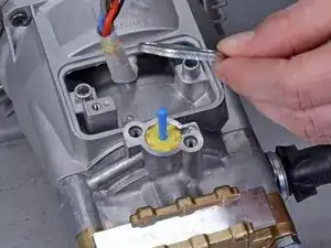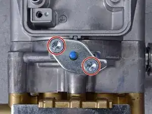 Используйте отвертку T30, чтобы открутить два болта, удерживающих крышку предохранительного клапана.