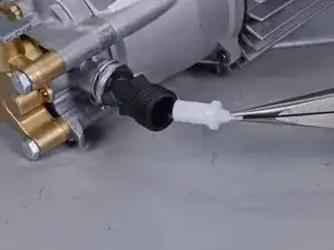 Потяните сильно, чтобы извлечь предохранительный клапан из узла насоса.