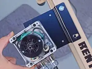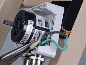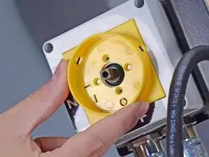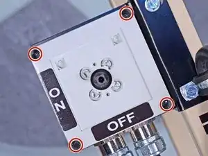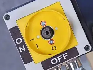 Используйте крестовую отвертку Phillips, чтобы снять два винта, крепящие желтую направляющую переключателя к узлу переключателя.