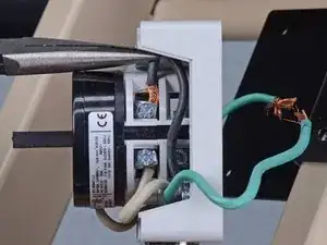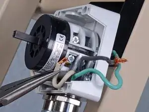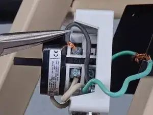 Используйте плоскую отвертку, чтобы ослабить два винта с правой стороны узла переключателя, которые фиксируют черный и белый провода сетевого шнура.