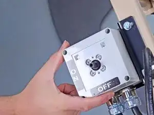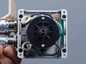 Используйте крестовую отвертку Phillips, чтобы вынуть винт из центра красной ручки включения/выключения.