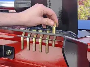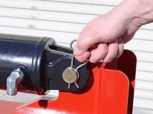 Вытяните два шплинта, фиксирующие большой поворотный штырь.