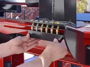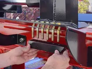 Используйте рычаг управления клапаном, чтобы втянуть режущий клин до тех пор, пока он не сядет под кронштейн отбрасывателя.