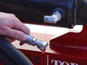 Это позволит избыточной гидравлической жидкости вытечь. Держите ёмкость под устройством для сбора капель.
