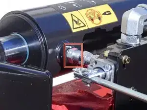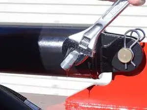 Поместите ёмкость под устройство, под цилиндром, чтобы собрать капающую гидравлическую жидкость.