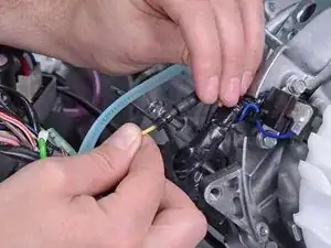 Отсоедините жёлтый провод датчика моторного масла, разъединив разъём.