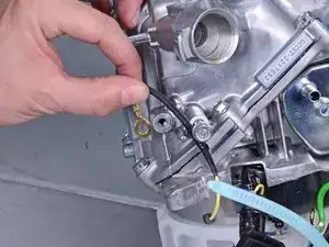 Используйте плоскую отвертку, чтобы отстегнуть провода карбюратора от боковой стороны узла двигателя.
