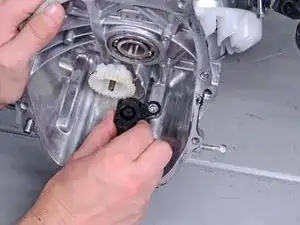 Используйте киянку и выколотку, чтобы выбить передний воротник (ближайший к электрической панели), фиксирующий моторную сборку к нижней крышке.