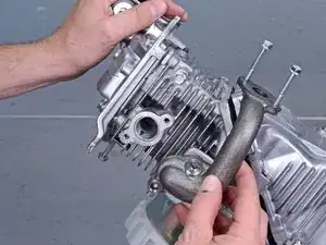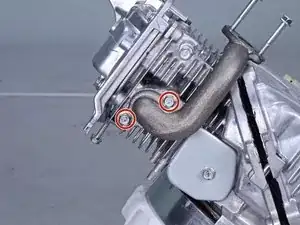 Используйте головку на 10 мм, чтобы снять два болта, крепящие выхлопную трубу.