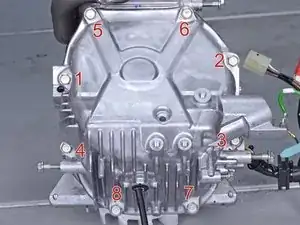 При сборке затягивайте болты крышки картера вручную в порядке, показанном на втором изображении.