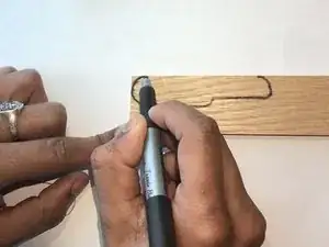 Обведите контур ножа на дереве.