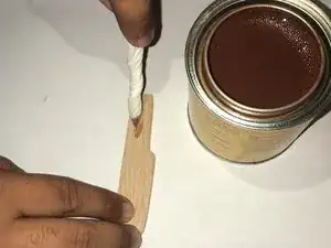 Покройте дерево морилкой и полиролью так, чтобы оно отражало сторону ножа.