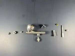 Начните разборку аэрографа с иглы. Каждая деталь закреплена резьбой, поэтому аккуратно отвинчивайте каждую часть вручную по одной.