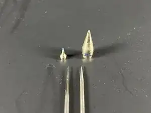 Любое искривление иглы повлияет на поток и форму распыления краски из аэрографа.