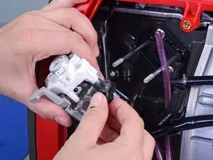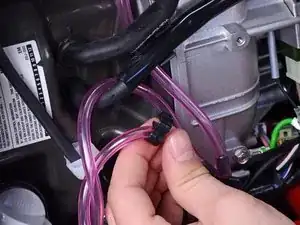 Выдвиньте вентиляционную трубку из держателя на боковой стороне карбюратора.