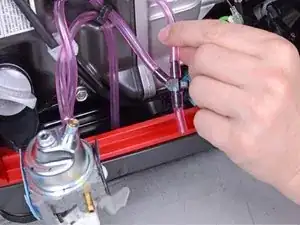 Отсоедините сапунную трубку от корпуса воздухоочистителя.