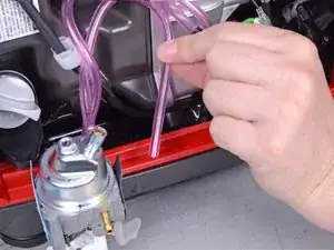 Поместите ёмкость под сливную трубку, чтобы собрать излишки топлива.