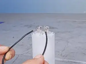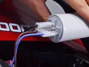 Извлеките конденсатор из его крепления, чтобы получить доступ к разъёмам проводки.