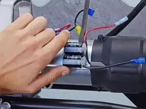 Используйте бокорезы или ножницы, чтобы перерезать две стяжки, связывающие положительный и отрицательный провода конденсатора.