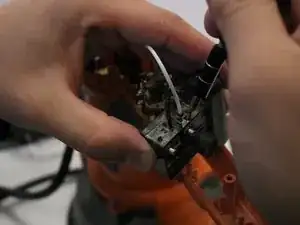 Удалите внешнюю пластиковую деталь, удерживающую белые и черные провода.