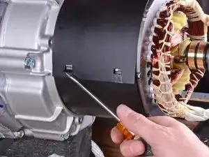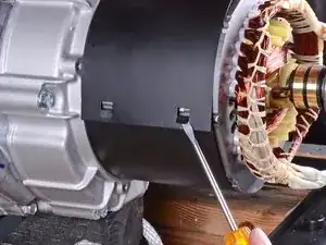 Используйте плоскую отвертку, чтобы поддеть язычки, фиксирующие крышку статора.