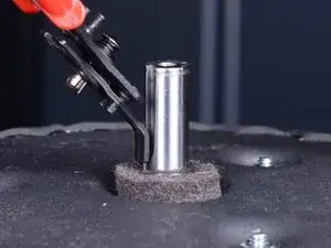 Используйте щипцы для стопорных колец, чтобы раскрыть и снять фиксирующий зажим у основания оси вентилятора.