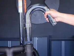 Опустите резиновую манжету вниз по гнутой трубе, чтобы открыть гнездо трубы.