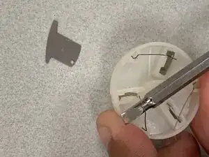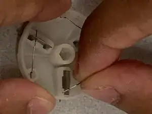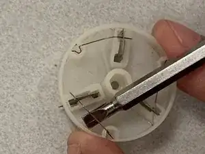 Воспользуйтесь плоской отвёрткой, чтобы поднять провод из отверстия неисправного лезвия.