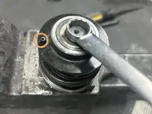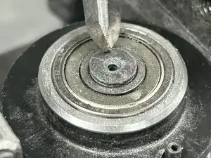 Разместите остроконечный зубило точно по центру балансировочного вала орбиты.