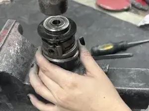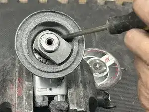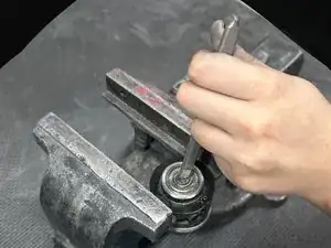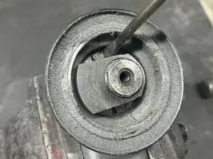 Если у вас есть съемник подшипников, вы можете использовать его для снятия балансировщика — в этом случае тиски не требуются. Просто закрепите съемник на передней торцевой пластине и поворачивайте рычаг, чтобы освободить балансировочный вал.