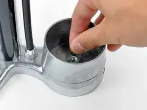 Закрутите новый манометр в напольный насос, поворачивая его по часовой стрелке в корпусе.